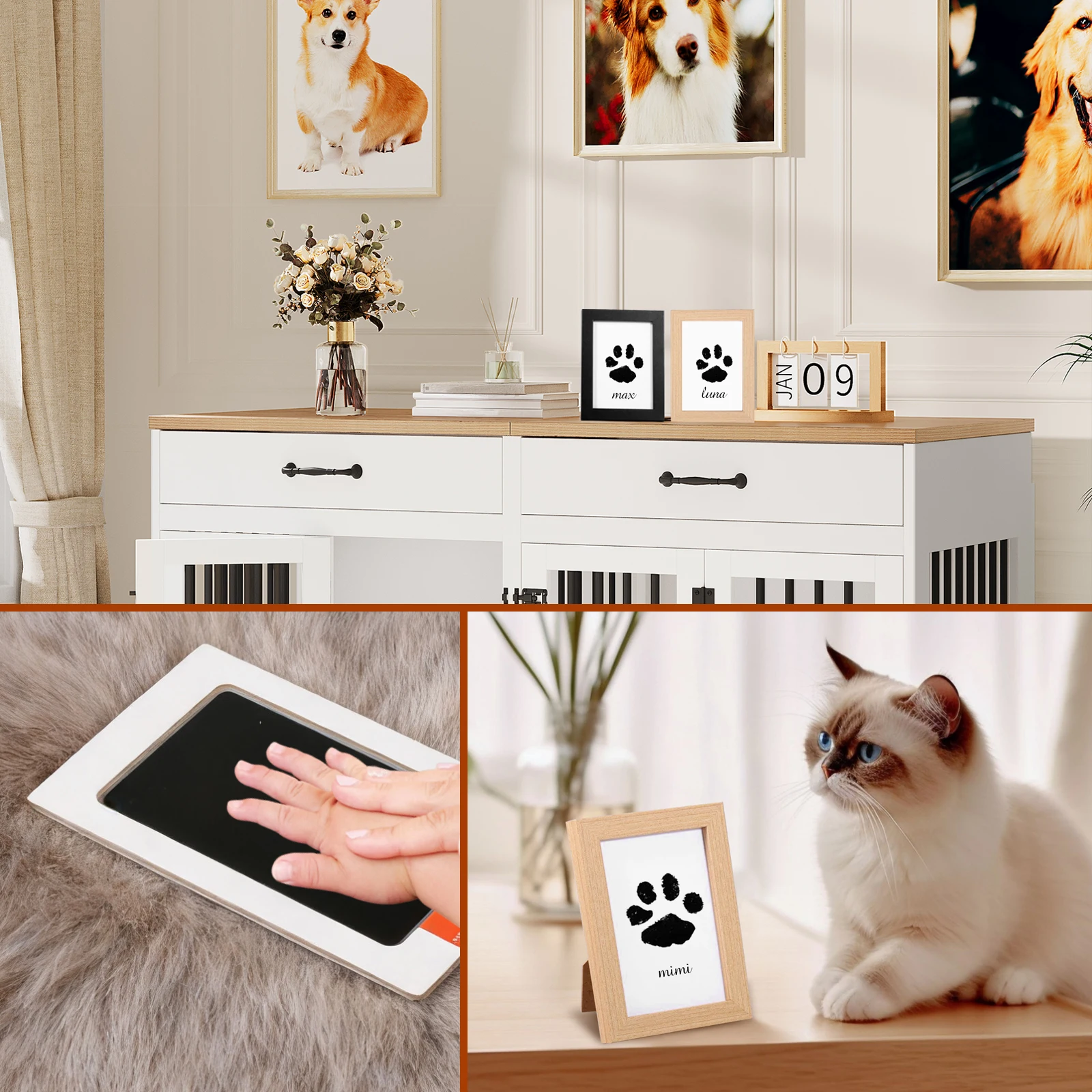 Complete Set Contents : You will receive 5 ink pads , 10 impression cards , and 2 wooden photo frames . This full set of tools is comprehensive , allowing you to fully preserve and display your pet's or baby's first prints , creating a cherished keepsake that you can treasure