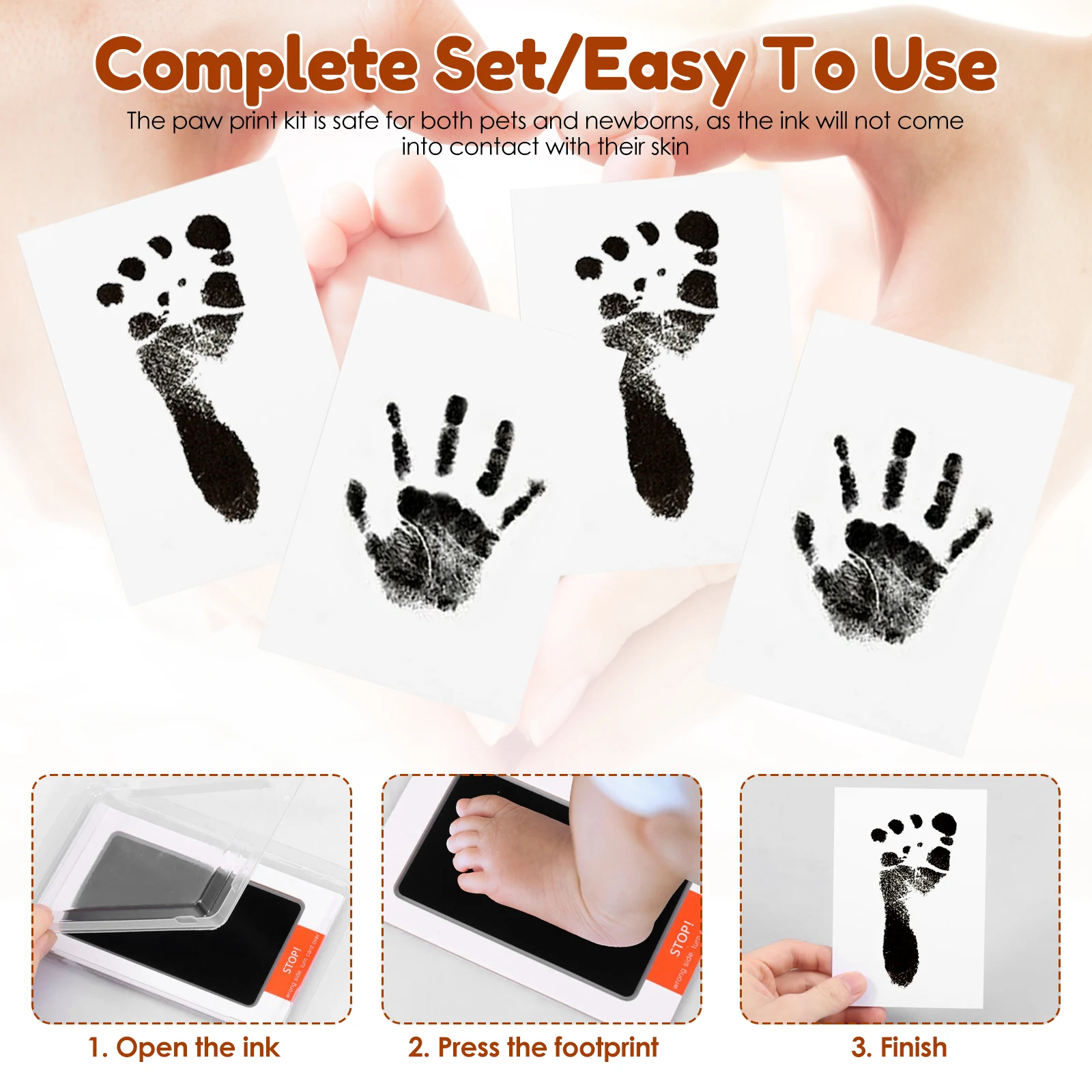 Safe for Pets and Babies : This paw print kit is safe for both pets and newborns . Whether it's for dogs , cats , or your delicate baby , there's no need to worry , the ink will not come into direct contact with their skin , ensuring peace of mind during use